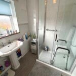 Walk in Shower cubicle, Sink, WC and towel radiator.